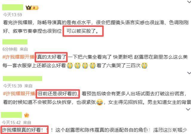 另外,赵露思的演技着实让我惊艳到了。 尤其是回忆中,父亲不让小许妍参加高考的桥段。 没有撕心裂肺的哀嚎,只是悲伤与绝望,甚至还有点祈求的意味。 为什么? 为什么从小到大你们都不爱我,只爱姐姐。 为什么我凭自己的努力,眼看着就要迎来人生转折点,可你们偏偏要将我这么多年的期望彻底掩埋。 非常有代入感,这段戏让我直接改变了对赵露思的看法,弹幕也全是赞赏声。 在我看来,如果后面没有公开与公司宣战。 《许我耀眼》顺利播出,赵露思的咖位大概率还能再上几个档次。 在同龄小花中,能演到这种水平,已经非常不错了。